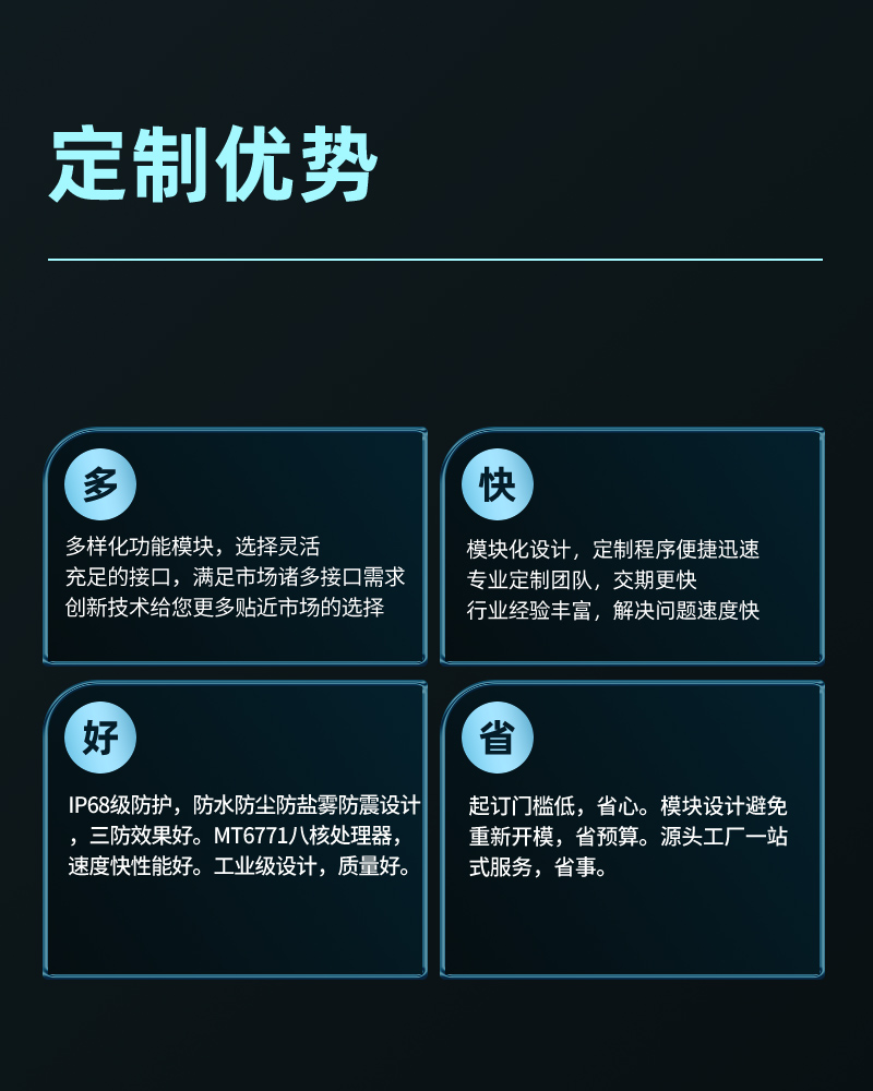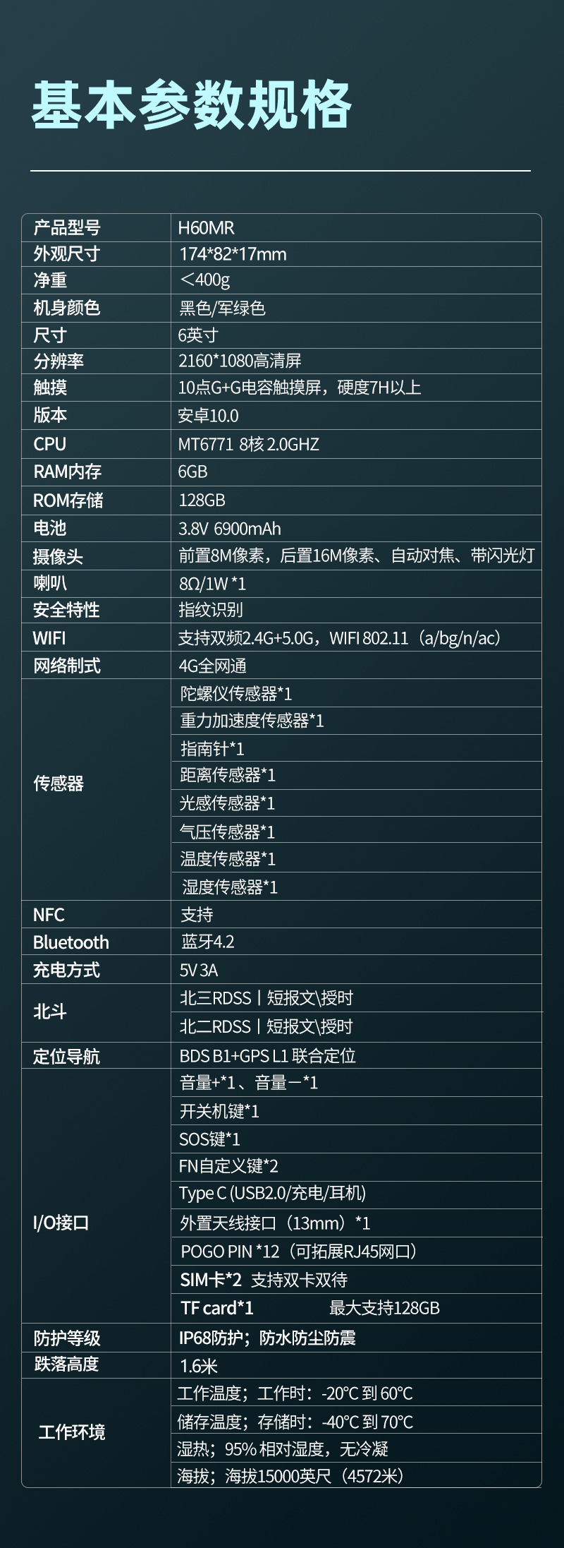 智能三防手持机源头实力厂家;支持ID设计、结构设计 、PCBA 、整机代工 、OEM/ODM一站式定制解决方案。5.5寸至6寸三防加固手持机,军工级北斗短报文手持机支持国产化系统芯片,配置灵活,支持定制!